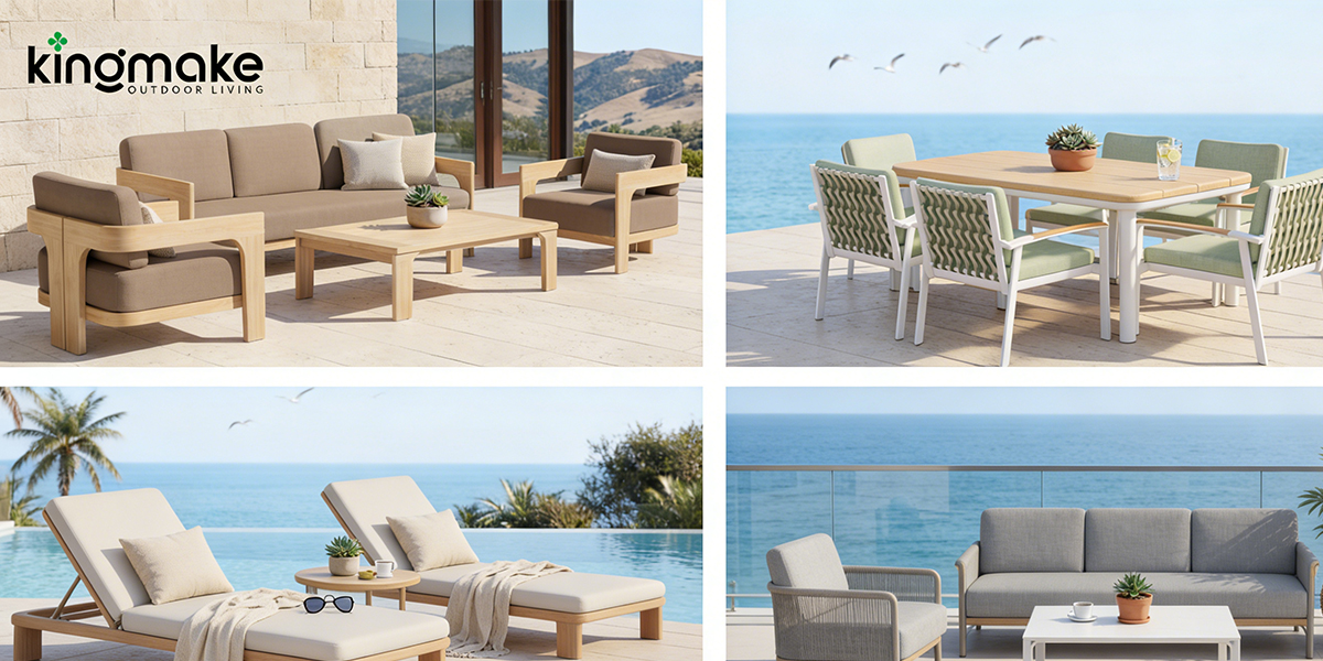 For buyers seeking the best teak outdoor furniture at scale, manufacturers like Kingmake offer teak in combination with aluminum frames and high-performance cushion fabrics, giving you the warmth of natural wood alongside modern durability and weather resistance. You can review the full product range at